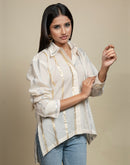 Refresh your wardrobe with our gold and silver Striped Shirt featuring unique patchwork embroidery. This shirt combines classic stripes with handcrafted patches for a modern twist on traditional design. Made from high-quality cotton fabric for a comfortable fit, it’s perfect for adding a touch of individuality to your everyday look.