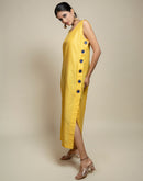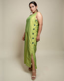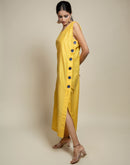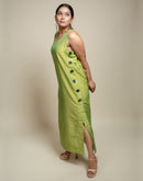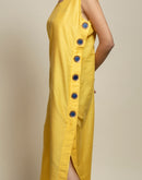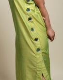Experience festive elegance with this Indo-Western dress in luxurious cotton silk. The dress boasts an ethnic-inspired silhouette, complemented by stylish side button details for a contemporary edge. Perfectly blending traditional charm with modern sophistication, it offers a smooth, comfortable fit ideal for any celebration.