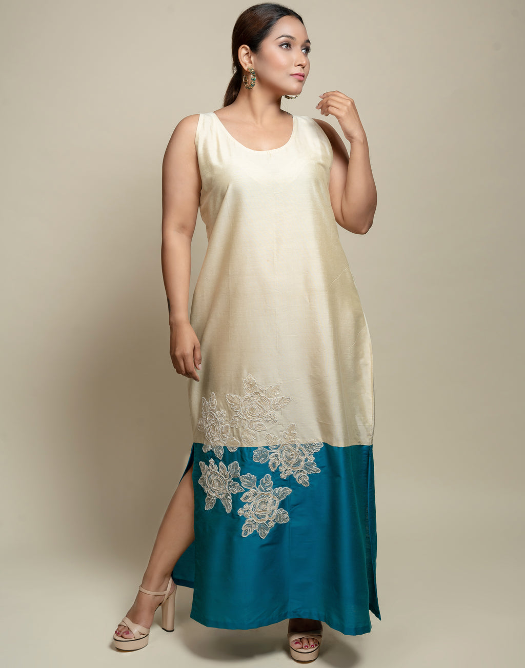Embrace modern elegance with our Jewel Toned Colourblock Maxi dress, showcasing chic colorblocking in vibrant hues. The luxurious blend of cotton and silk ensures a comfortable fit, while the eye-catching design makes it perfect for any occasion. Effortlessly stylish and versatile, this dress is your go-to for making a standout impression.